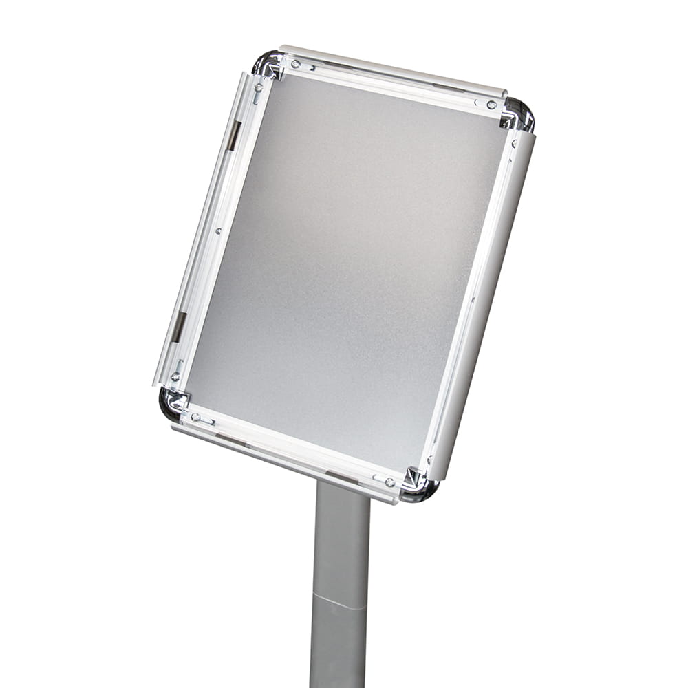 Das Menüblatt, Flyer oder Plakat kann einfach ausgetauscht werden. Legen Sie es einfach in den Rahmen und klicken Sie es in der Leiste ein, dann ist der Ständer bereit für die erneute Präsentation.