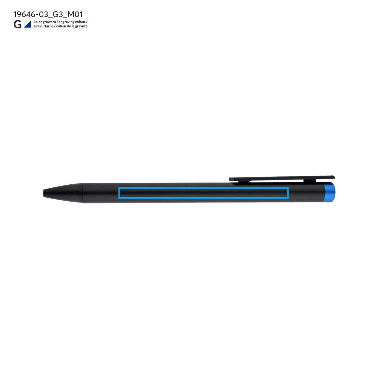 ALI ist ein außergewöhnlicher Kugelschreiber, der modernes Design und Funktionalität vereint. Dank innovativer Lösungen ermöglicht der ALI Kugelschreiber nicht nur präzises Schreiben, sondern auch Markieren und Gravieren in einer Farbe, die der Spitze des Kugelschreibers ähnelt. Das macht ihn zur idealen Wahl für Profis, die sich in ihrem Umfeld hervorheben möchten. Sein eleganter schwarzer Metallkörper mit schwarzen Akzenten unterstreicht den exklusiven Charakter dieses Produkts und bildet gleichzeitig eine perfekte Basis für farbige Gravuren, die garantiert Aufmerksamkeit erregen.