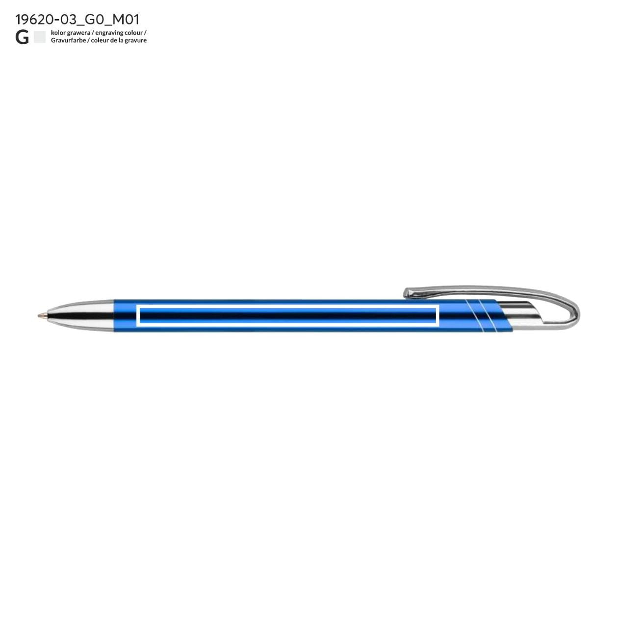 Ein dünner und eleganter Metallkugelschreiber ist das ideale Werkzeug für Personen, die Eleganz und Funktionalität schätzen. Der AVALO Kugelschreiber in metallisch glänzender Farbe passt perfekt zu modernen Bürotrends und dem täglichen Gebrauch. Sein minimalistisches Design macht ihn nicht nur praktisch, sondern auch stilvoll, was ihn zu einem ausgezeichneten Accessoire für jede Tasche oder jeden Schreibtisch macht. Die Klammer und die Endstücke des Kugelschreibers in silberchromierter Farbe verleihen ihm Klasse und Raffinesse, und das originelle Design der Klammer hebt ihn von anderen auf dem Markt erhältlichen Modellen ab.