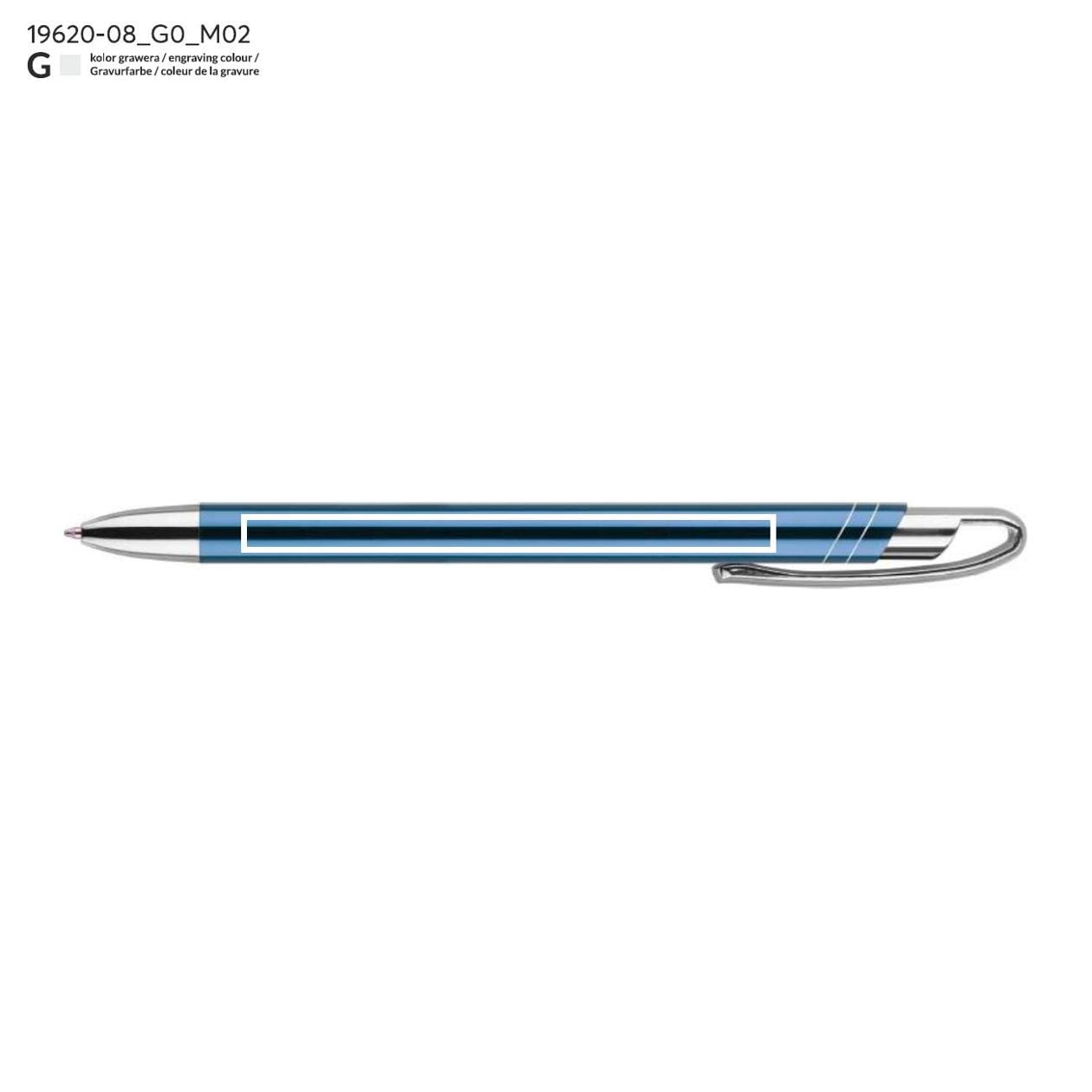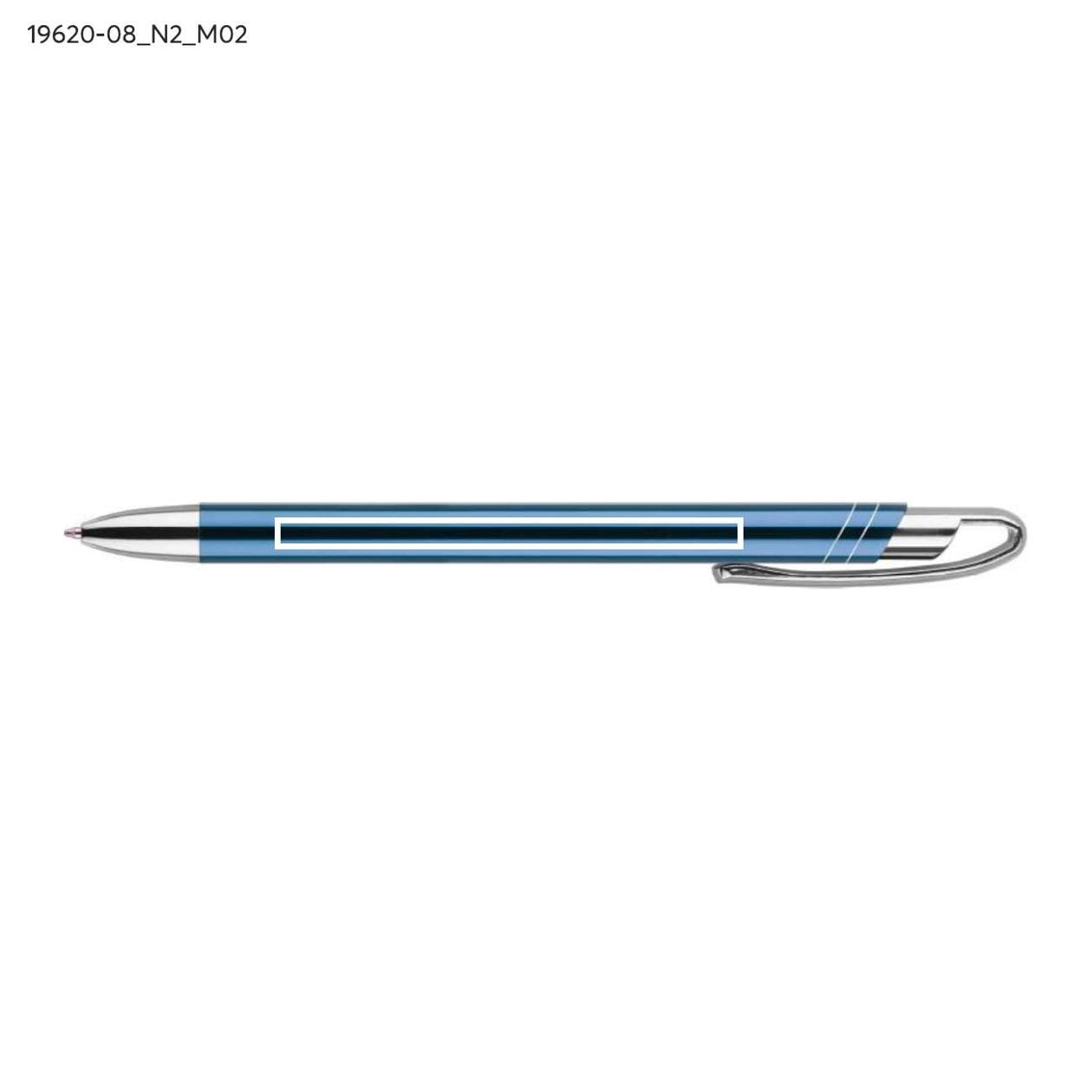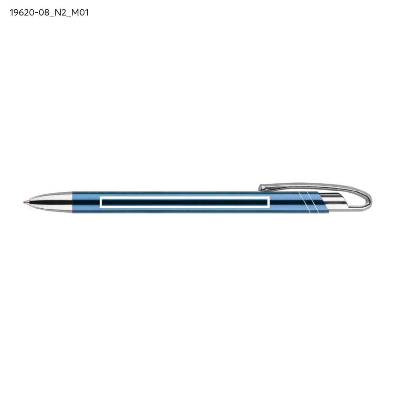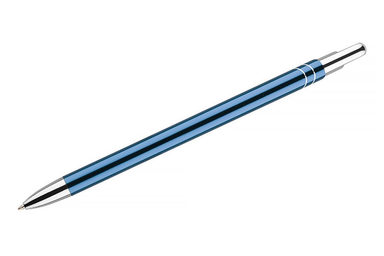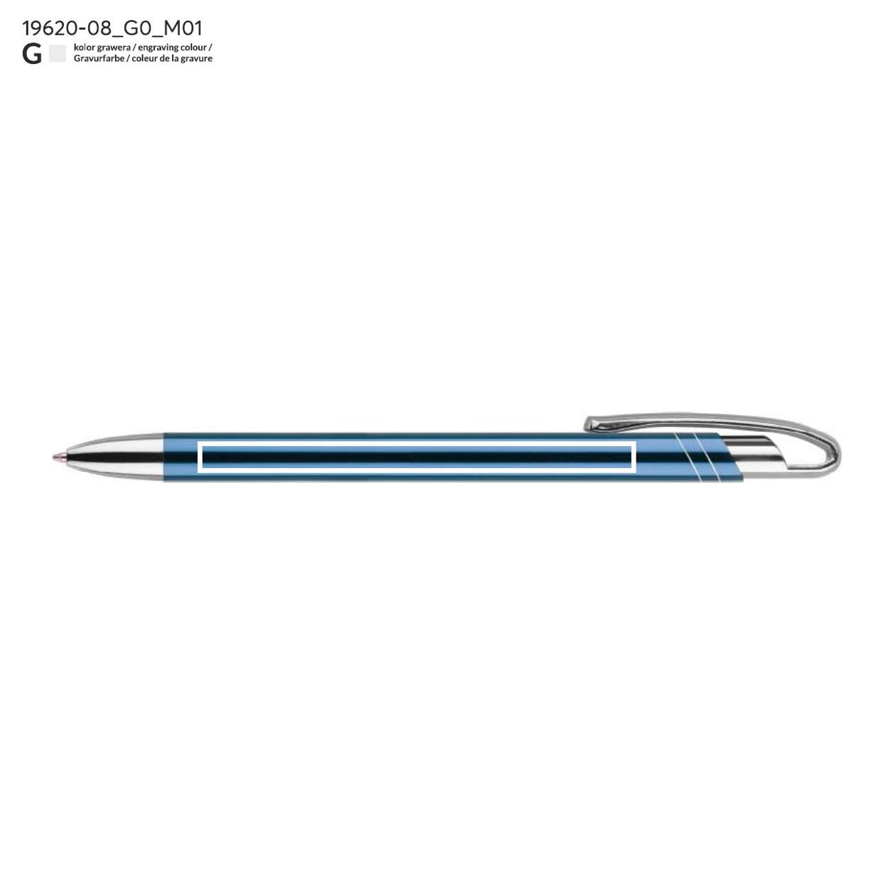 Der dünne und elegante Metallkugelschreiber AVALO ist die ideale Wahl für Personen, die Eleganz und Funktionalität schätzen. Seine metallische Oberfläche verleiht ihm ein modernes und stilvolles Aussehen, das garantiert Aufmerksamkeit erregt. Die Klammer sowie die Endstücke des Kugelschreibers in verchromtem Silber passen perfekt zum hellblauen Gehäuse und bilden eine harmonische Einheit. AVALO zeichnet sich nicht nur durch seine Ästhetik aus, sondern auch durch das originelle Design der Klammer, das den Kugelschreiber nicht nur praktisch, sondern auch einzigartig macht.