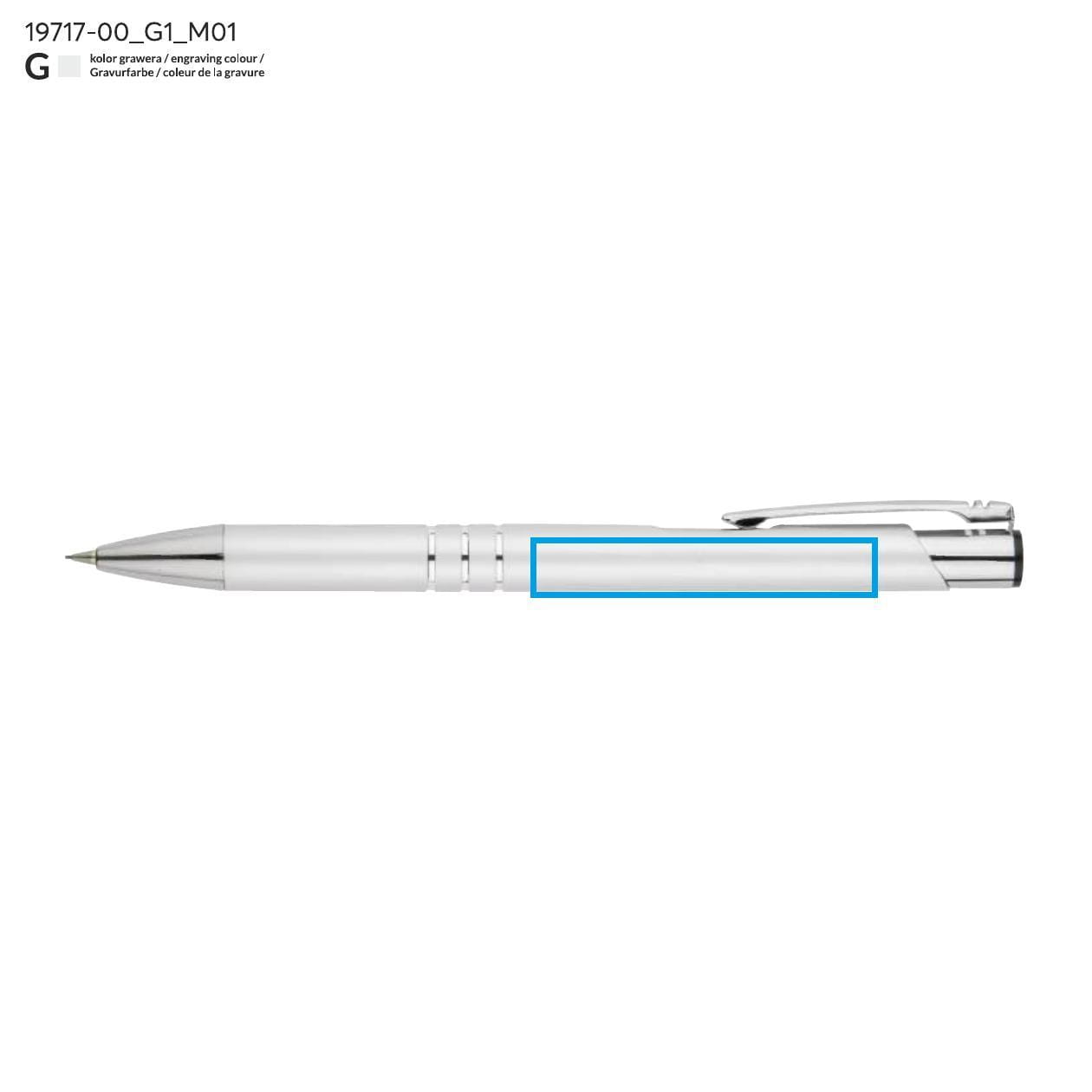Der elegante Automatikbleistift rKALIPSO ist die perfekte Wahl für Menschen, die nicht nur Funktionalität, sondern auch Ästhetik schätzen. Sein einzigartiges Design mit drei charakteristischen Ringen am Schaft zieht die Blicke auf sich und macht ihn zu einem äußerst stilvollen Büroaccessoire. Der Bleistift besteht aus zu 100 % recyceltem Aluminium, was ihn umweltfreundlich macht. Mit dem rKALIPSO kümmern Sie sich nicht nur um Ihre Schreibbedürfnisse, sondern unterstützen auch die Idee der nachhaltigen Entwicklung.