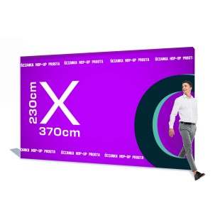 Gerade Hop-Up Werbewand 3,7 x 2,3 m mit einseitigem Druck