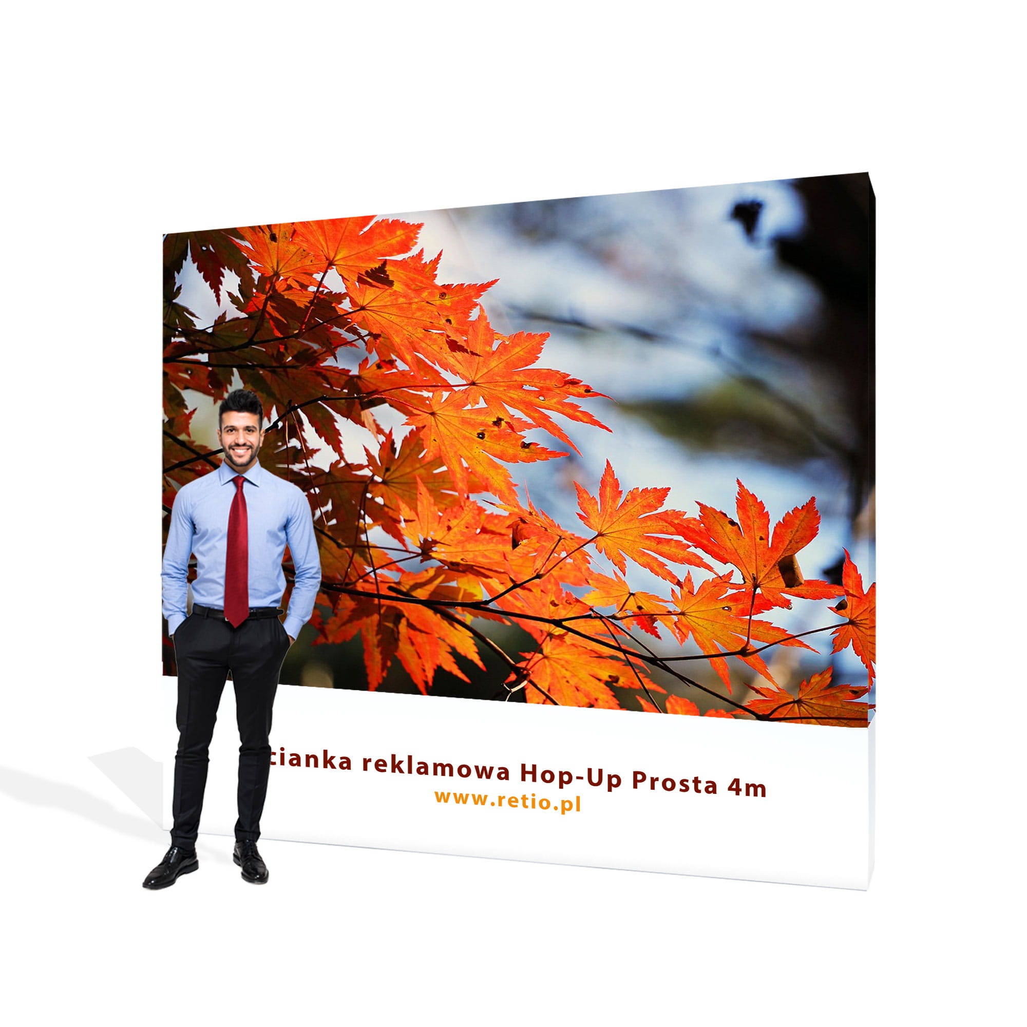 Die Hop-Up Werbewand ist ein sehr stabiles, für Stoff gespanntes System. Die Konstruktion wurde aus hochwertigem Aluminium gefertigt, das zusätzlich eloxiert wurde, um es zu schützen. Die 4-Meter-Version ermöglicht die Präsentation von Grafiken im Großformat, die sofort ins Auge fallen.