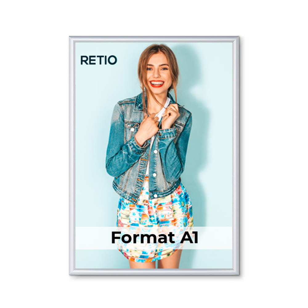 KRAST Klapprahmen A1 (59,4 x 84,1 cm) Aluminium silber mit scharfem, geradem Eckprofil, Plakatrahmen OWZ Wandrahmen für Poster und Fotos Profil 25 mm