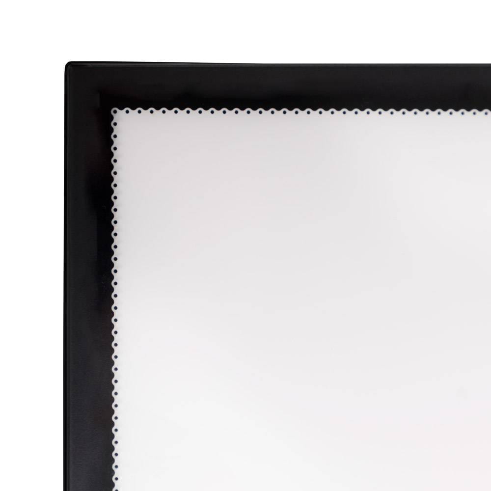 Der LED-Rahmen ist mit Kantenbeleuchtung in Form von 12-V-LED-Leuchten mit Tageslichtfarbe (8000K) ausgestattet. Dies ist die ideale Lösung für Präsentationen in Schaufenstern. Der Rahmen ist für die Wandmontage vorgesehen.