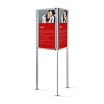 - Trilateraler Ständer – Inhalte können von drei Seiten präsentiert werden;