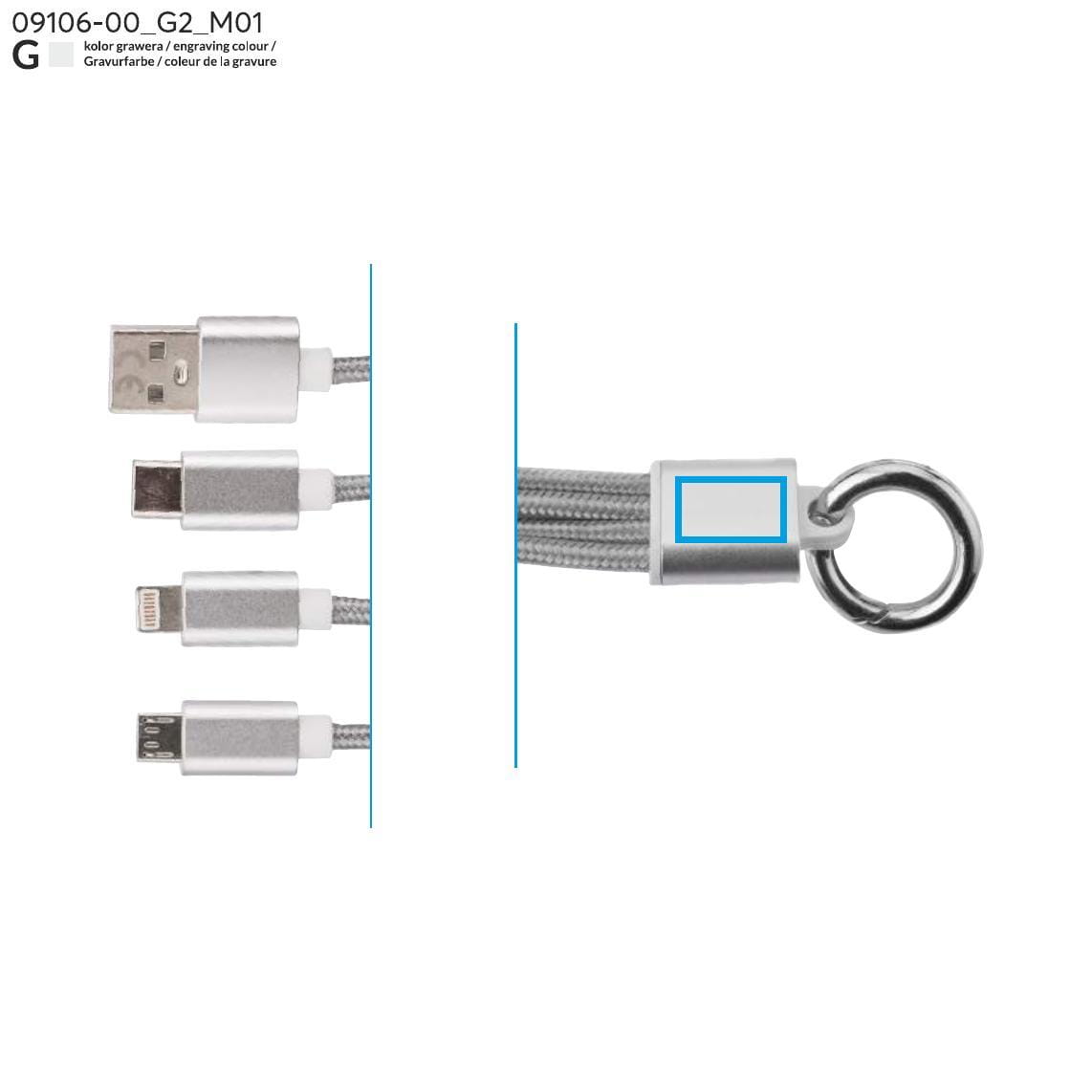 TAUS USB 3 in 1 Kabel Silber mit Logoaufdruck