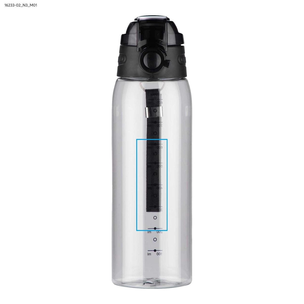 Trinkflasche mit Messskala 900 ml KOLTER schwarz mit Logodruck