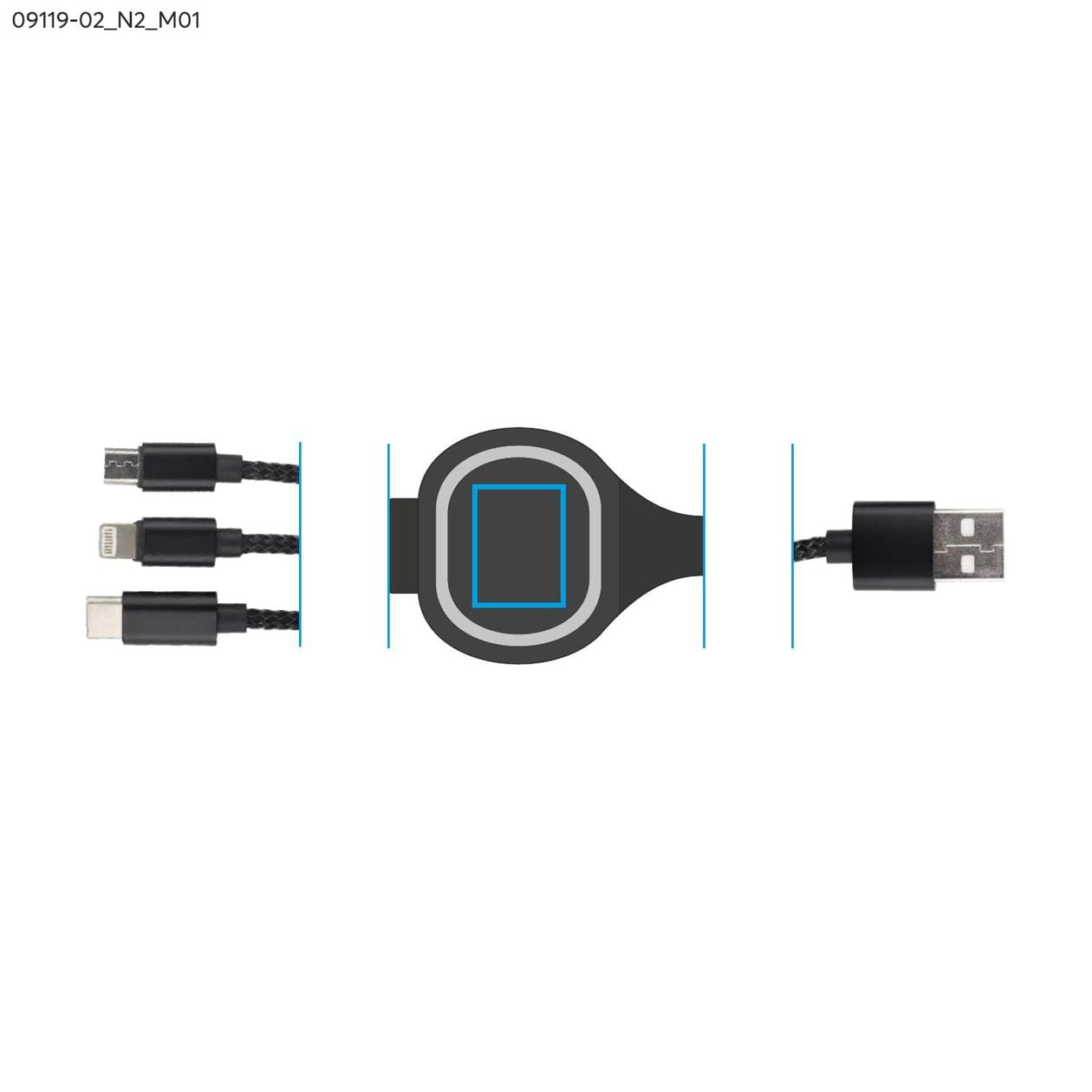 USB 3 in 1 LUX Kabel schwarz mit Logo