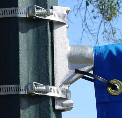 Um einen doppelseitigen Mast zu erhalten, kaufen Sie einfach zwei Stücke des Street-Mastes und befestigen beide Masten an den drei mitgelieferten Klammern. Die Klemmen sind 75 cm lang und eignen sich für die Montage der Masten auch an dicken Straßen- und Laternenmasten.